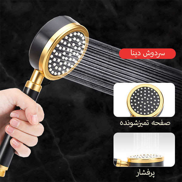 سردوش حمام دینا مدل فلزی تولید شده از آلومینیوم بسیار مرغوب و با کیفیت میباشد و قابل بازکردن جهت تمیز کاری ورسوب زدایی میباشد ؛ سوراخ های ژله ای محکم و قابل رسوب زدایی میباشد که خریداران محترم جهت تمیز کردن نگران این موضوع نباشند .
